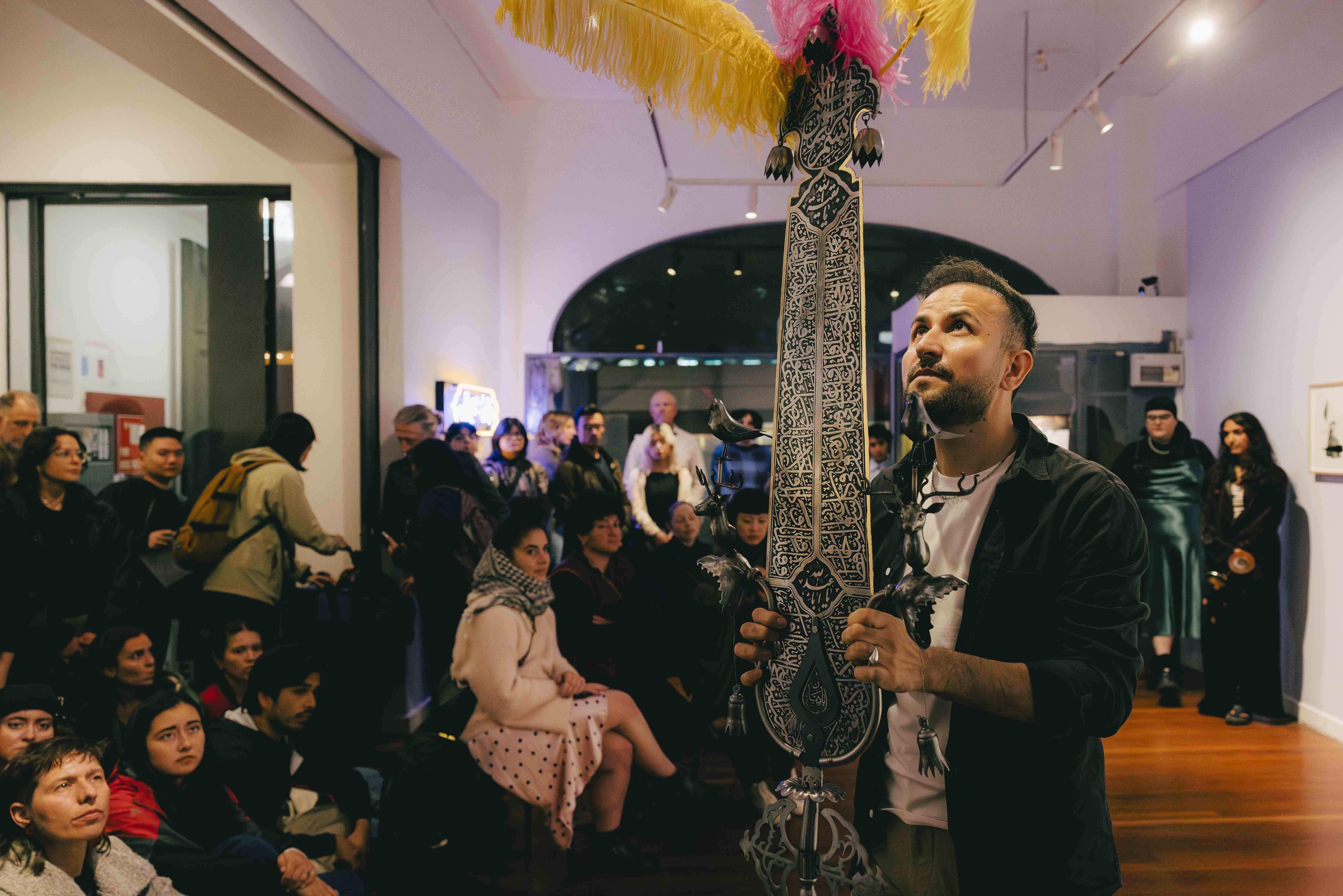Elyas Alavi, ALAM Performance, 2024, poetry and musical performance at 4A gallery in collaboration with SWANA queer musicians, duration: 45 minutes, photo by Anna Hay
